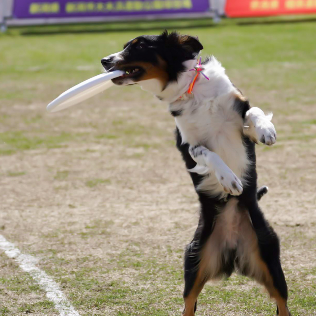 ・その都度練習できる種目が決まっておりますので、アナウンスや受付時にお渡ししたプログラムでご確認ください。なお、ペア・チャレンジ・小型犬・レトリーブ、こども大会は風の強さによっては投げる方向が変わることがございますので、アナウンスの指示に従ってください。